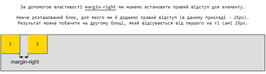 CSS властивість margin-right встановлює відступ від правого краю елемента.