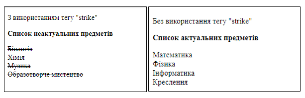 Найпростіший приклад використання HTML теґа <strike>